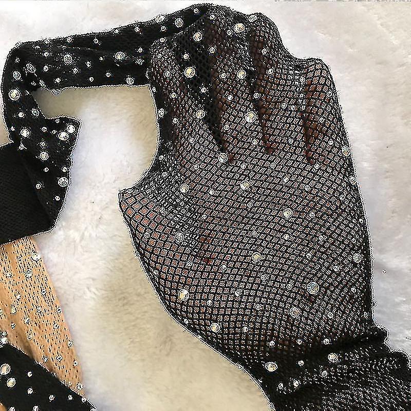 Women Rhinestone Fishnet Mesh Pantyhose Stockings Hollow Shiny Tights Party Club Wear