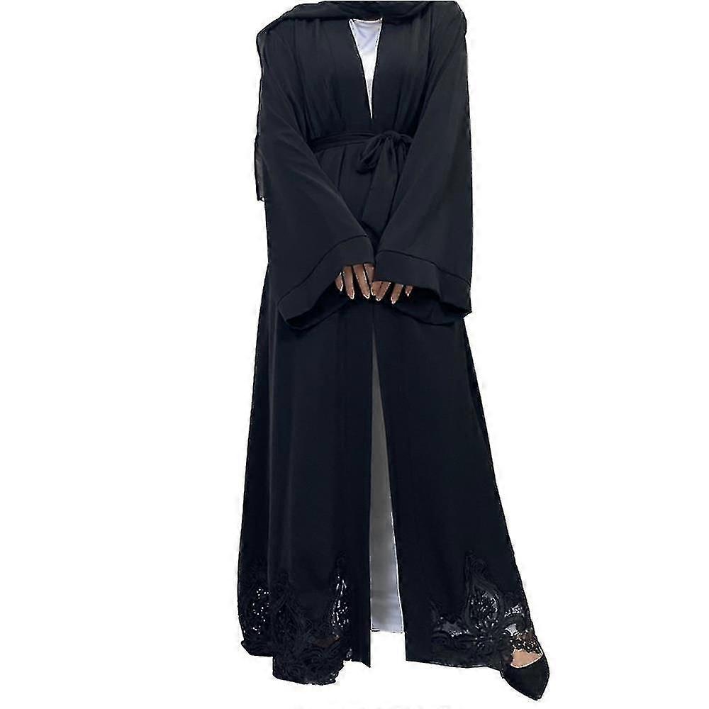 Women Embroidery Hem Muslim Maxi Robe Cardigan Islamic Long Dress