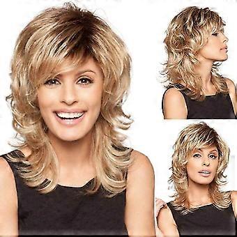Women Gradient Short Curly Fluffy Wig Side Parted Synthetic Wigs Hairpiece with Bangs