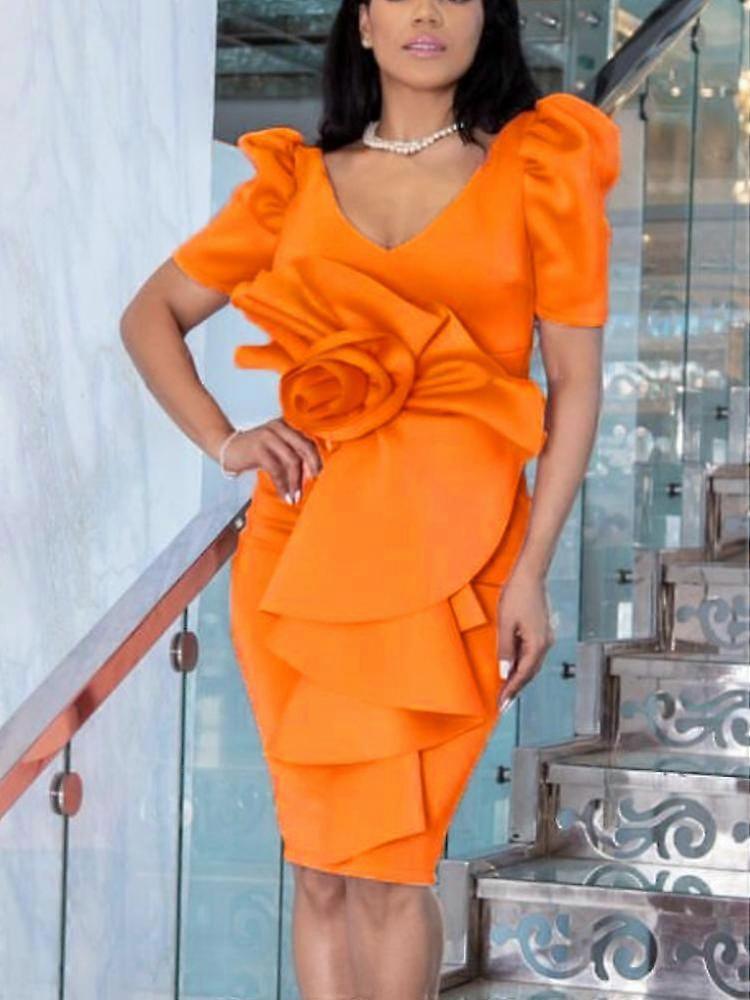 Women Party Dress Pink Short Sleeves Big Flower Ruffles Package Hip Event Prom Occasion Home Coming Gowns Outfits Plus Size