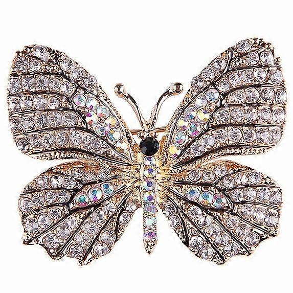 Womens Clear Crystal Rhinestone Butterfly Brooch