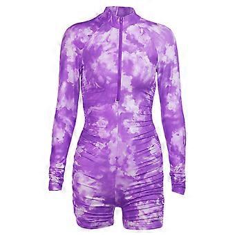 Women Long Sleeve Zip Jumpsuit Gradient Tie-Dye Butt Lift Biker Shorts Playsuit