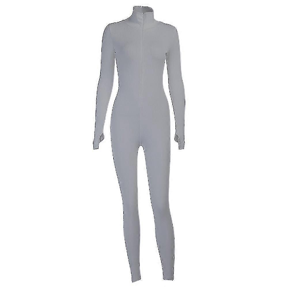 Women Sleeve High Neck Jumpsuit Ribbed Knitted Zipper Con Rompers Embroidery Letters Pants Playsuit Sportswear