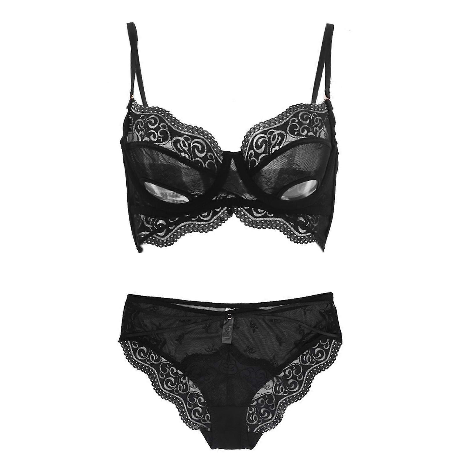Women Lace Lingerie Set Lady Fashionable Soft Breathable Bra Panty Set For Home Bedroom Lingerie Party Black 80b