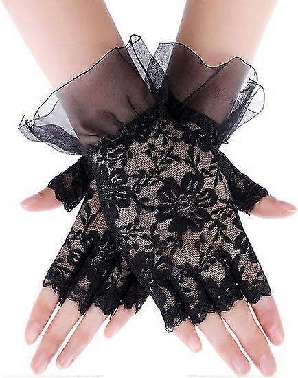 Women Short Lace Floral Gloves Sunblock Fingerless Lace Gloves for Wedding Bridal,2024 Ping
