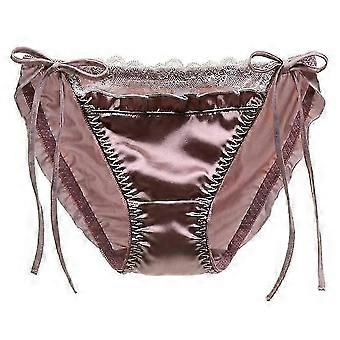 Women Panties Lace Patchwork Lace Up Seamless Satin Breathable Anti-septic Mid Waist Soft Shirring Intimate Underpants Lady Underwear
