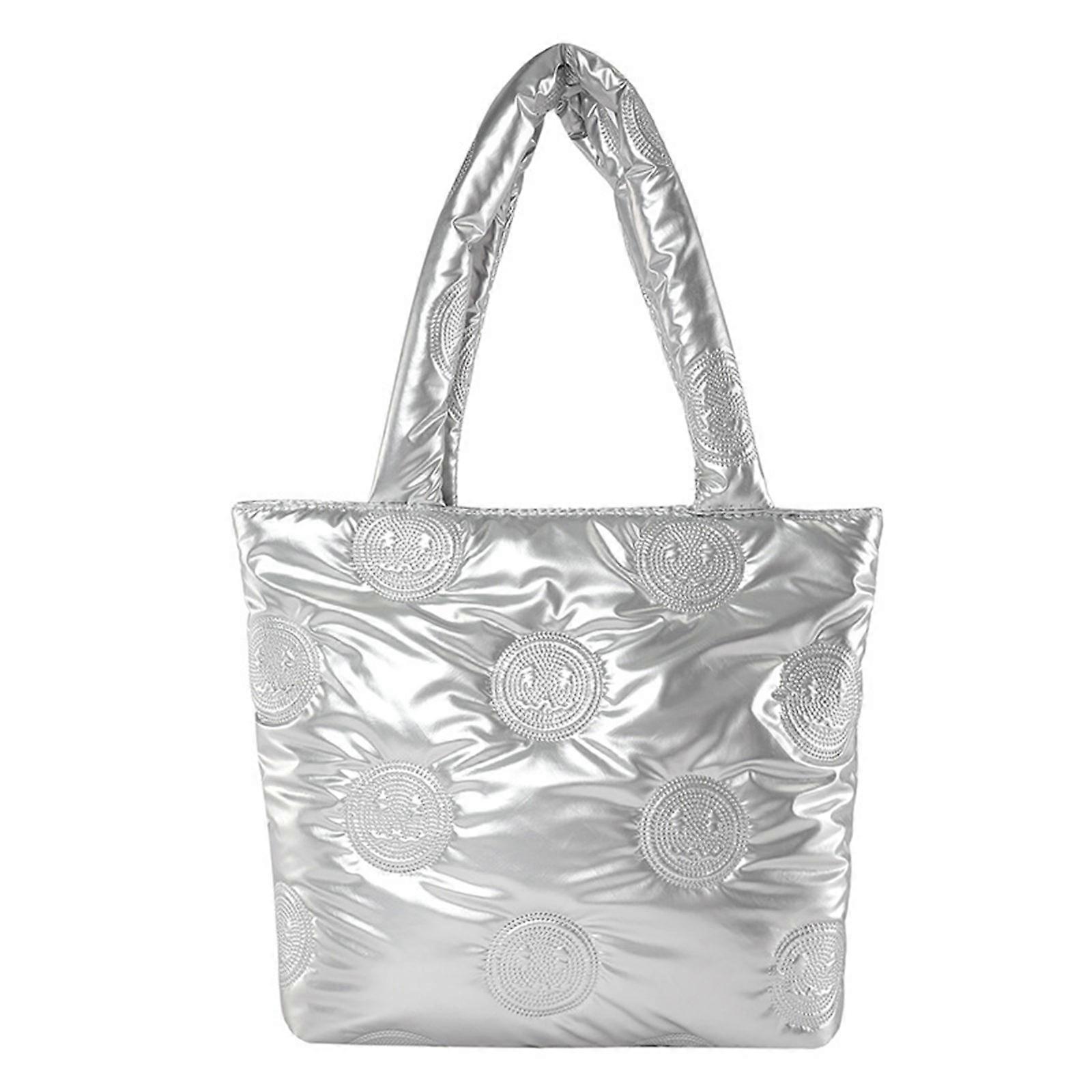 Women Large Capacity Shoulder Bag Lady Solid Color Handbags Autumn Winter Shopping Bag All-matching Down Cotton Tote Bag White
