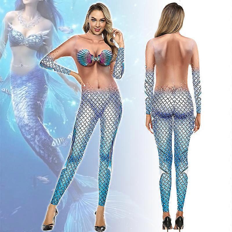 Womens 3D Mermaid Print Jumpsuit Bodysuit Halloween Carnival Cosplay Costumes