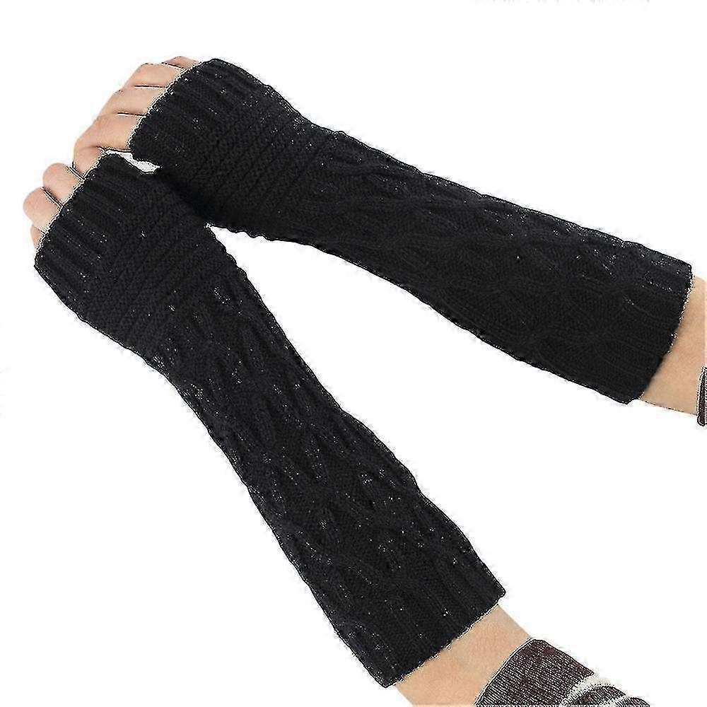 Womens Thermal Long Knitted Gloves Arm Warm Fingerless Mittens Winter