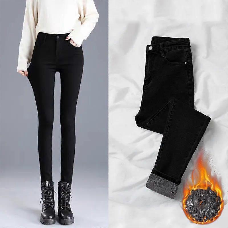 Women Thermal Jeans Winter Snow Warm Plush Stretch Jeans Lady Skinny Thicken Fleece Denim Long Pants Pencil Trousers