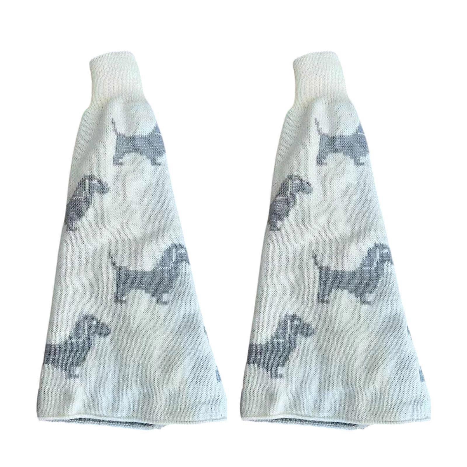Women Subculture Dachshund Dog Jacquard Leg Warmers Harajuku Punk Knitted Wide Leg Cover Flared Long Socks Streetwear White