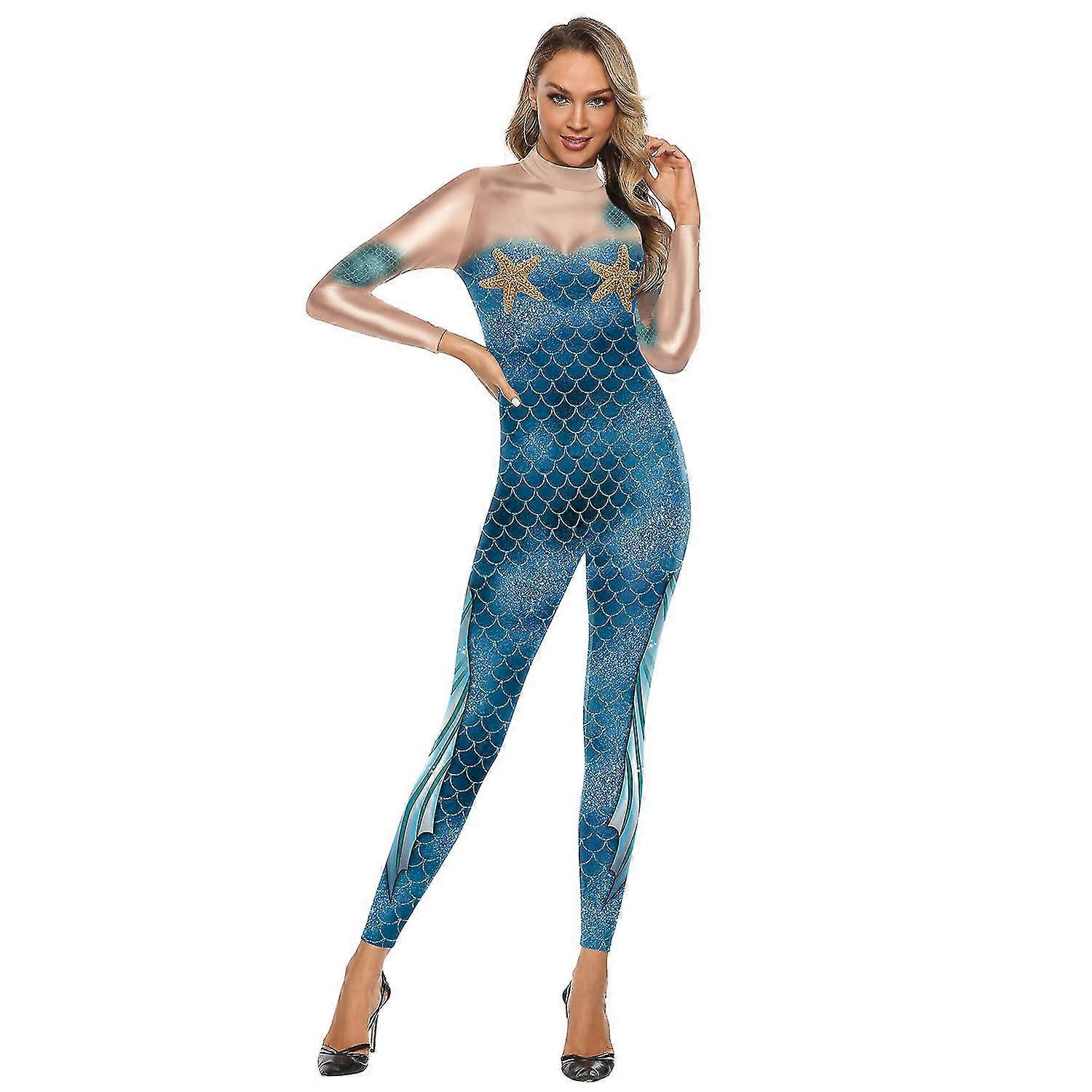 Women Bodycon Halloween 3d Mermaid Print Jumpsuit Palysuits
