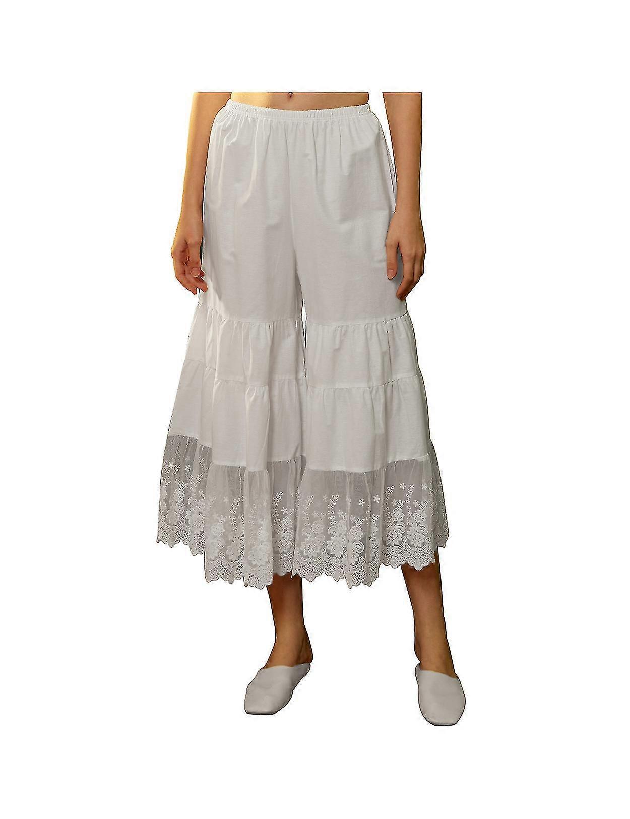 Women Culottes 100% Cotton Half Slip Loose Cropped Pyjama Bottoms With Lace Embroidery Ivory Black