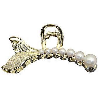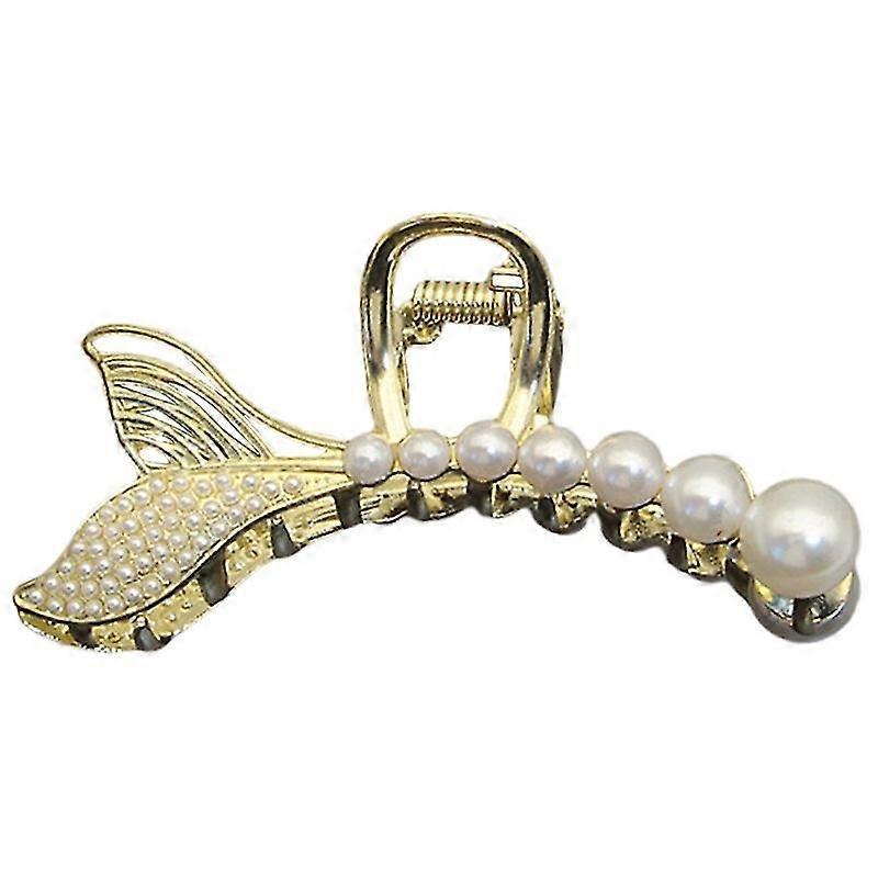 Women Fashtail Large Barrettes Pearl Hairclips Metal Hair Clips For Women Golden