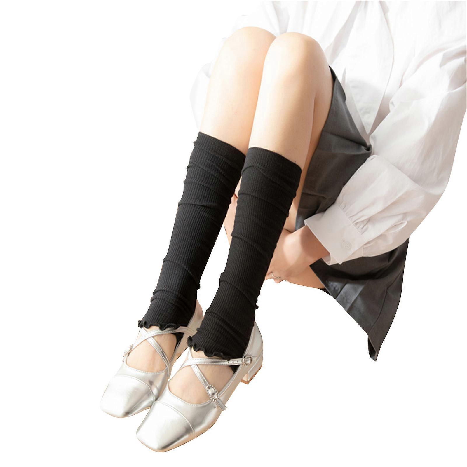 Womens Y2k Solid Color Leg Warmers Ruffle Trims Knee Socks Leg Warmer Gothics Cute Socks Calf Socks Thin Socks Black