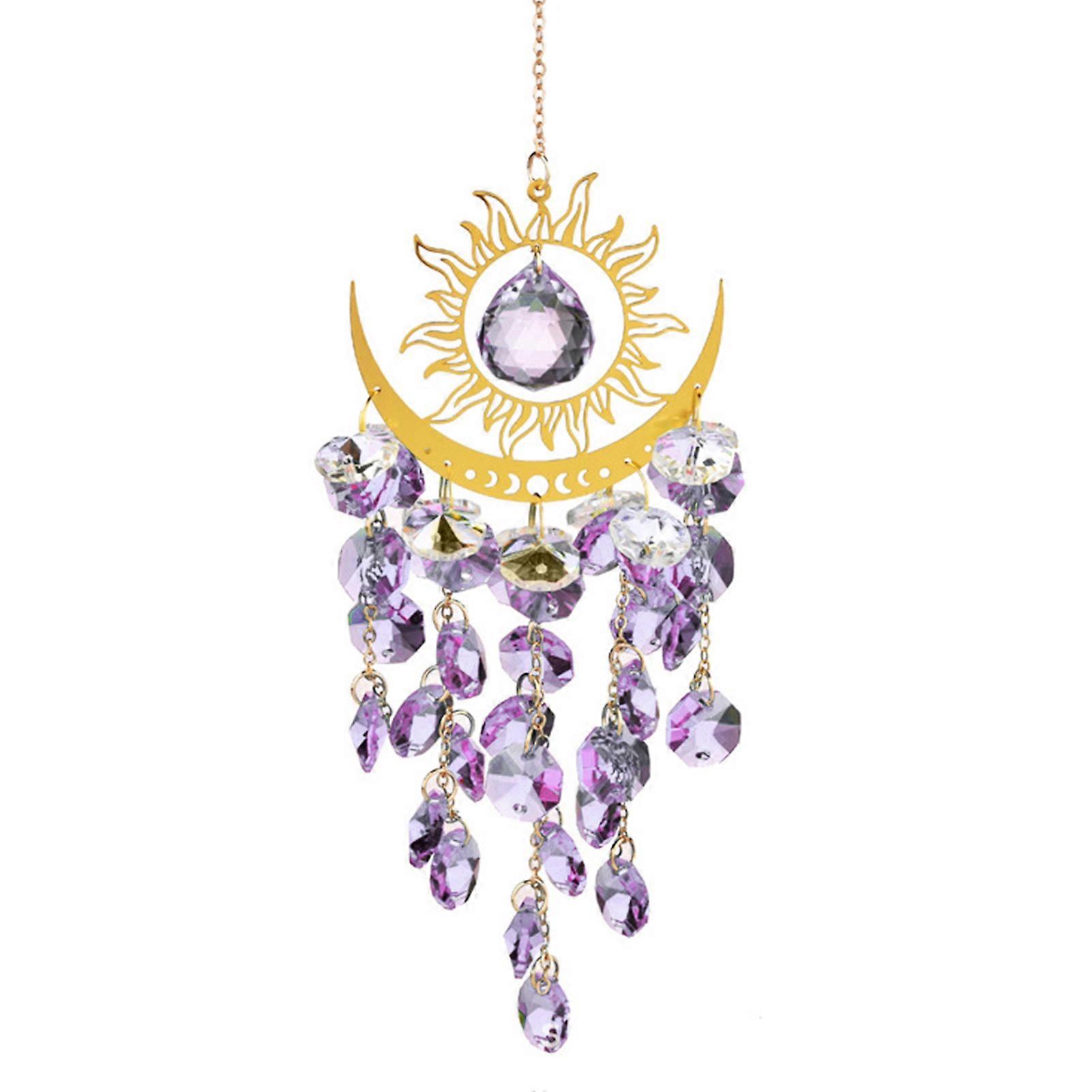 Sun Moon Suncatcher Decoration Indoor Outdoor Colorful Faux Crystal Rainbow Maker Prism Window Hanging Ornament Wind Chime Pendant Christmas Gifts