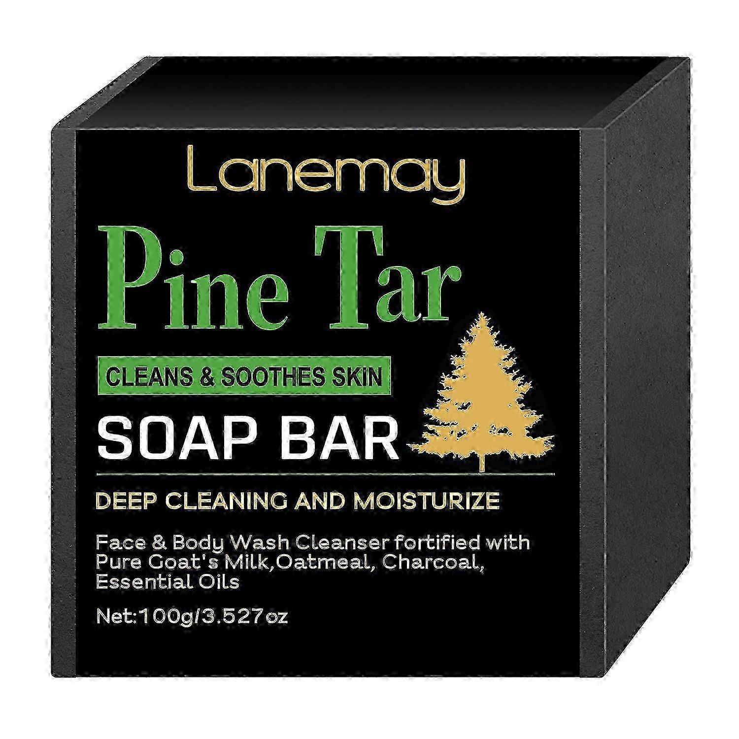 Natural Pine Tar Soap Bar 100g - Anti Acne, Eczema & Psoriasis Relief, Deep Cleansing Face & Body Wash with Oatmeal & Goat Milk