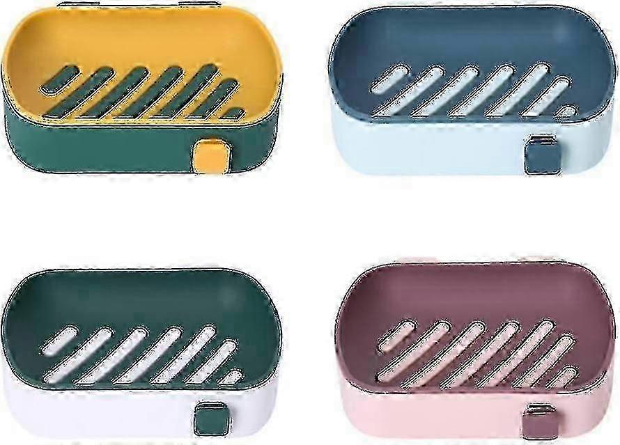 Tizzy 4 Pieces Soap Dish, Self Adhesive Suction Cup Wall Hanging Soap Box, Plastic Double Layer Soap Dish, Soap Dish With Hook For Bathroom,