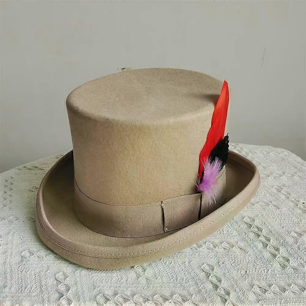 Purplish Red 100% Wool Hat for Men and Women Fedora Top Gentleman Bowler Hat Black White Feather Magic Hat Presidential Hat