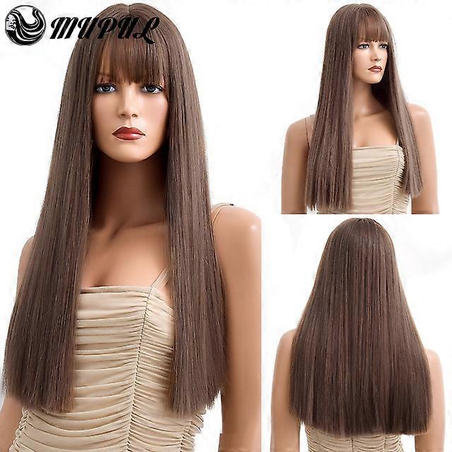 Purple Ombre Straight Synthetic Wig For Woman With Bangs Blue Cosplay Wigs Long 26Inch Lolita Natural Hair Heat Resistant