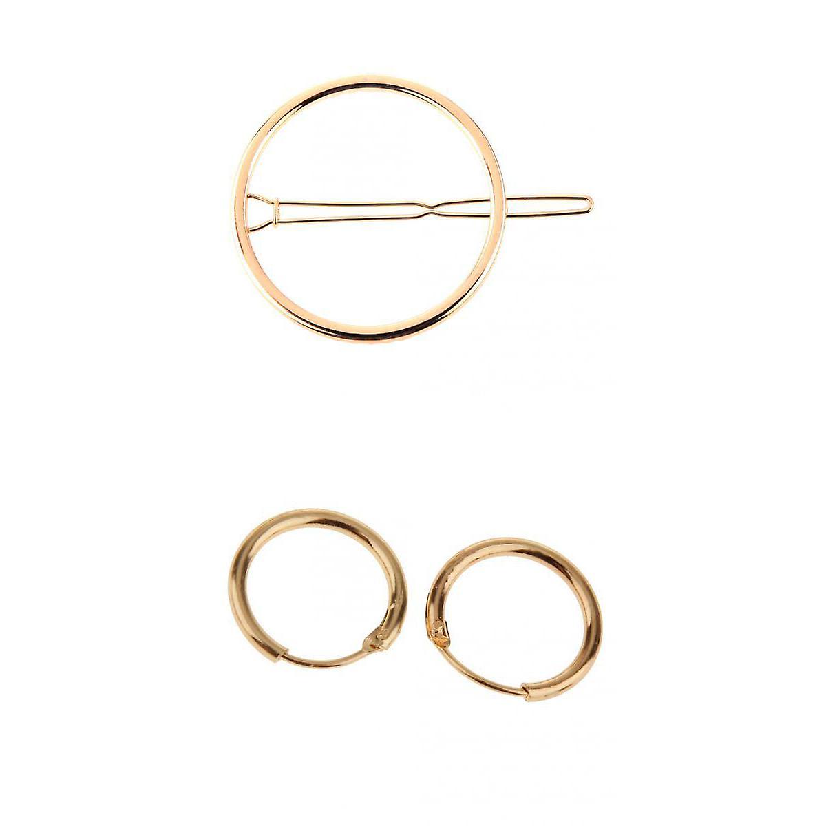 European Style Simple Geometry Metal Hairpins Hair Clips Round Earing 2Sets