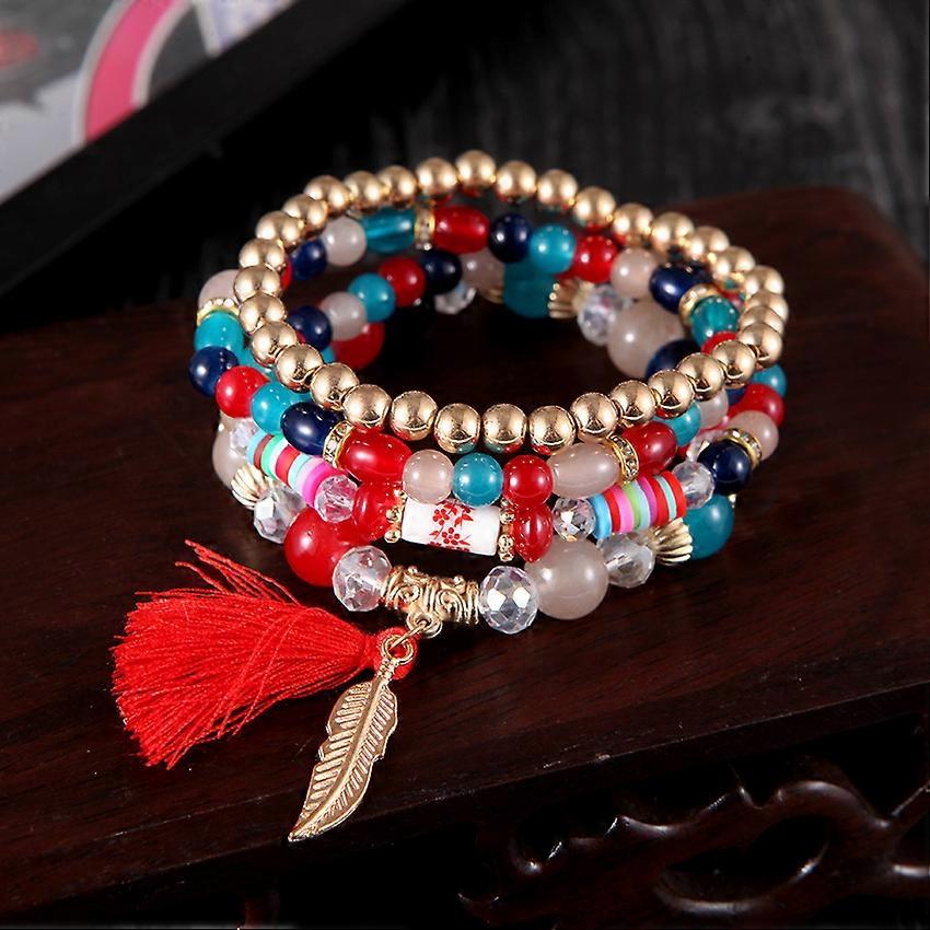 Bohemian ethnic style multi-layer beaded bracelet jewelry trendy four-piece bracelet tassel leaf bracelet