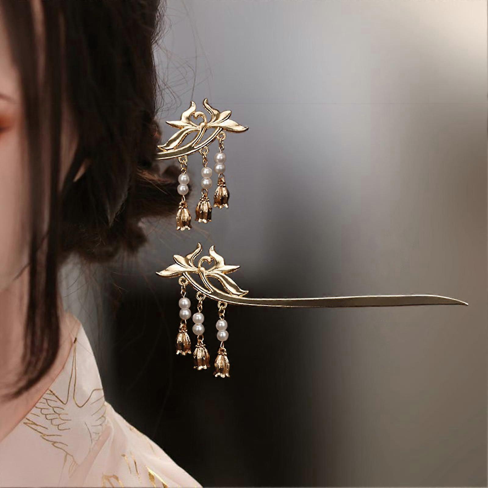 Ethnic Style Flower Hair Chopsticks With Pearl Tassel Hanfu Headwear For Hair Diy Accessory Hair Styling