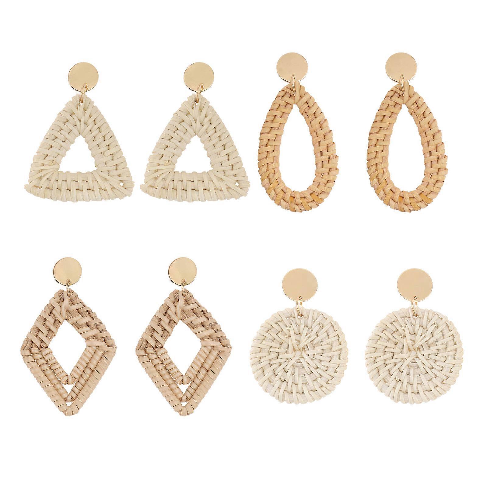 Vintage Style Rattan Geometric Earring Wood Material Dangle Earring Performance Mother 4Pairs