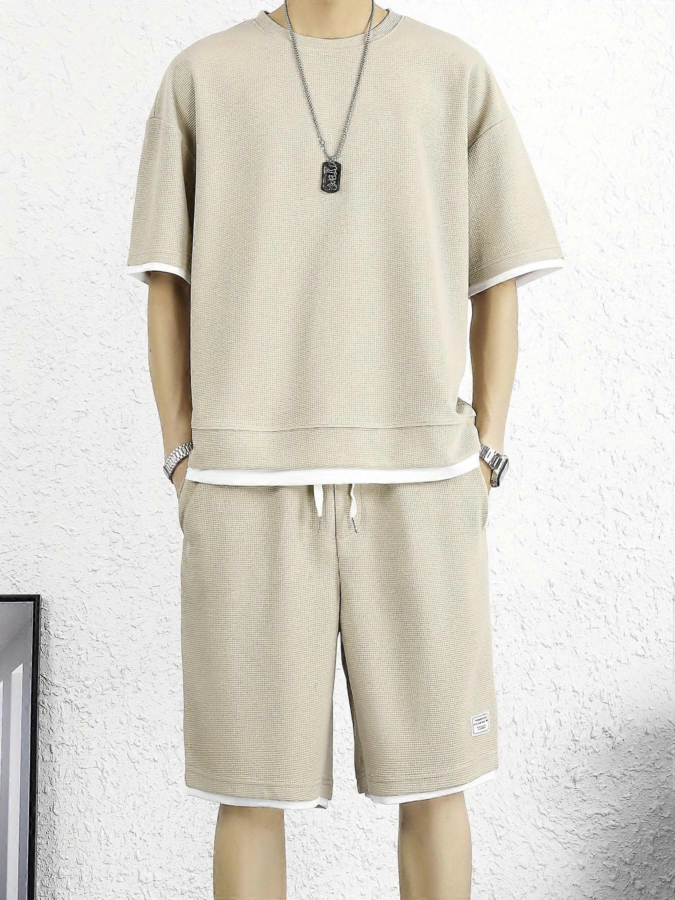 New style Men's Casual 2pcs Set, Chic Solid Color T-Shirt + Active Shorts Matching Set For Beach Resort Sports