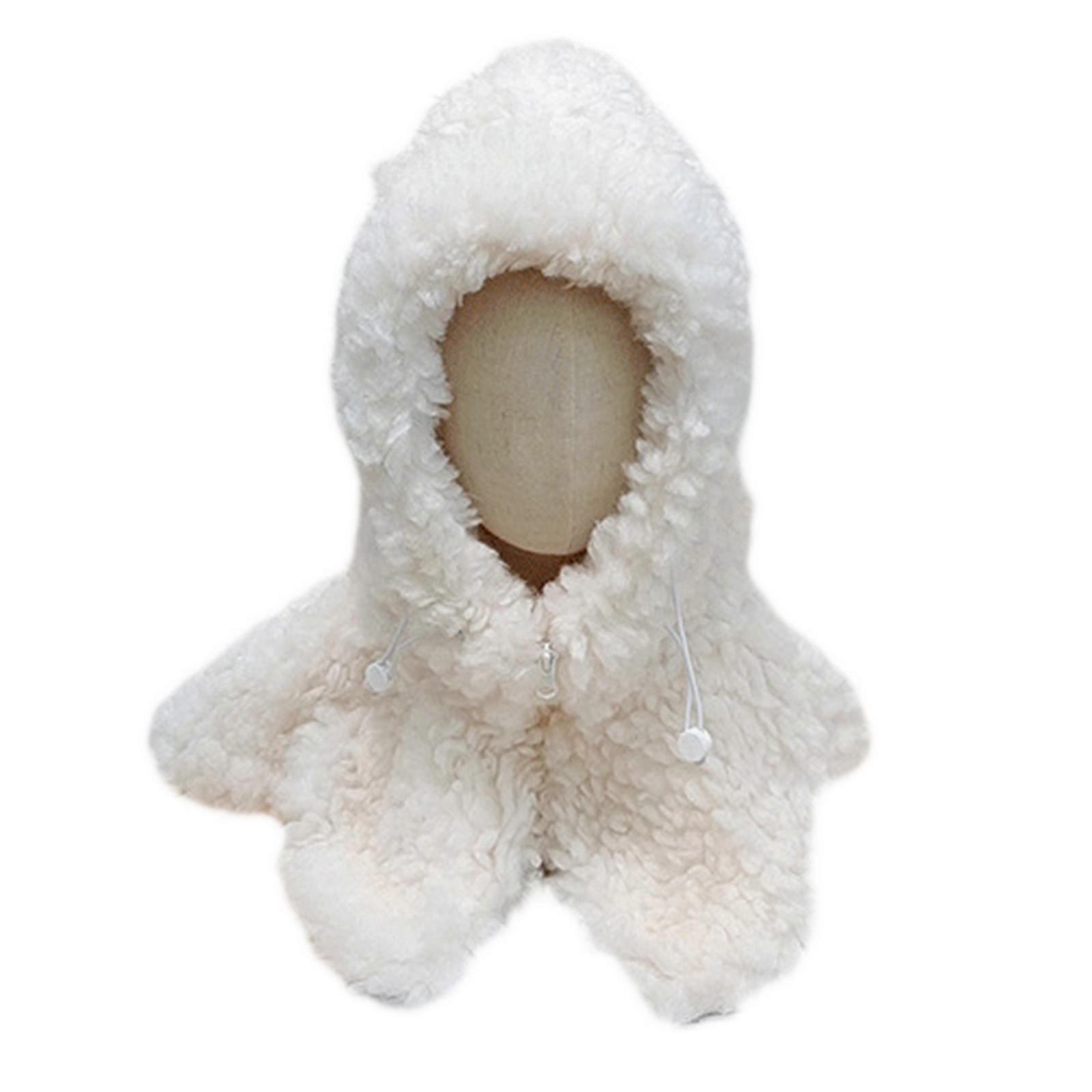 New Style Thick Earflap Hood Cap Warm Zipper Scarf Hat Fashion for Head Neck Warmer Windproof Skiing Hat for Cold Weathe White