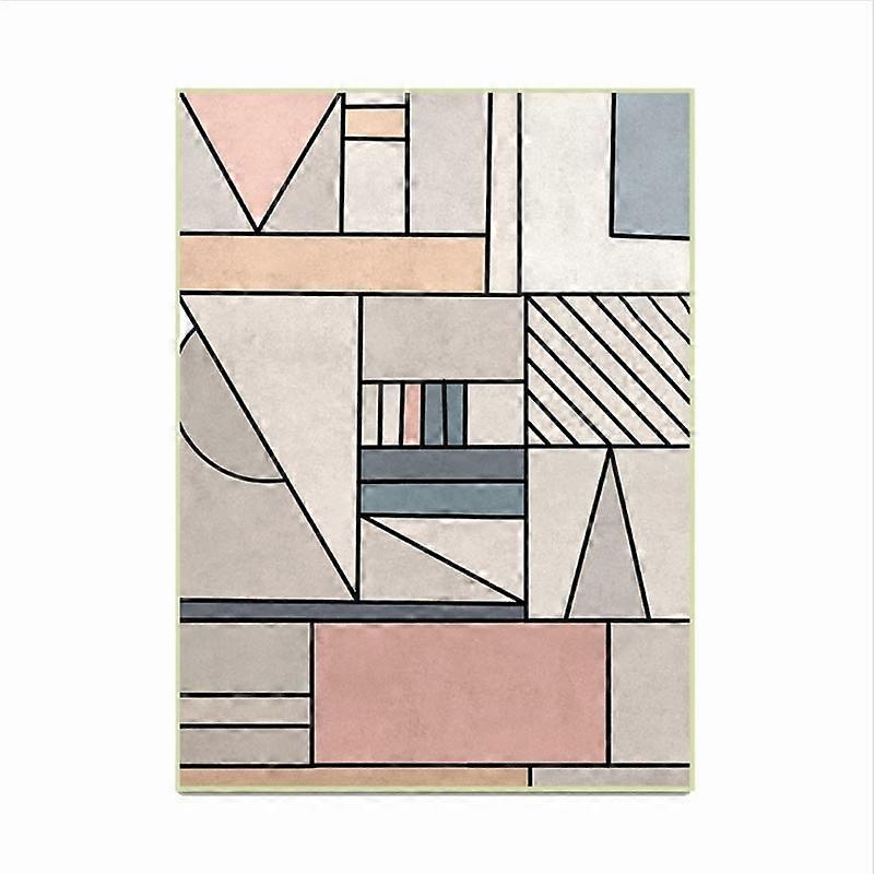 Nordic Style Geometric Gray-pink Pattern Rugs Soft Home Non-slip Carpets for Living Room Crystal Velvet Bedside Mat