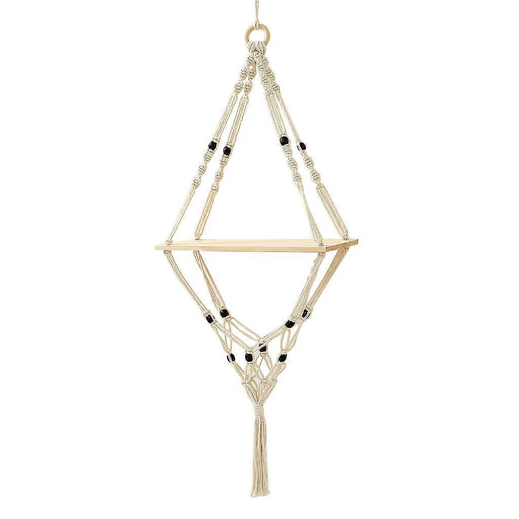 Nordic Style Macrame Plant Hanger Shelf with Wooden Square Plate Beads Woven Tassels Planter Rack Flower Pot Holder Tray Bohemian Decoration