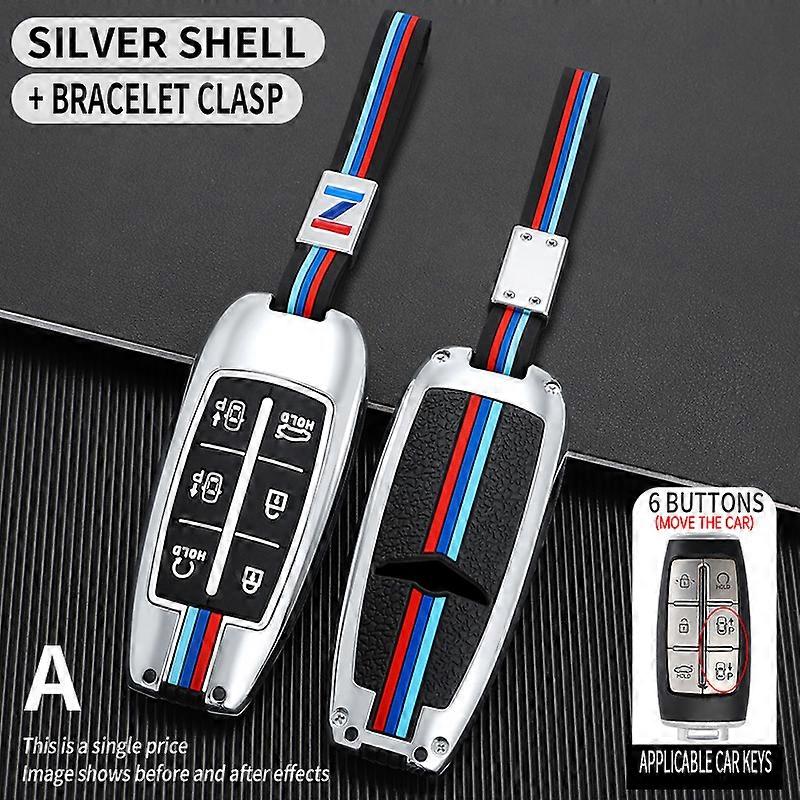 Zinc Alloy Car Key Case Cover with Holder for Hyundai Genesis GV70 GV80 GV90 2020 2021 2022 Key Shell Protective Ring Car Accessories~04587