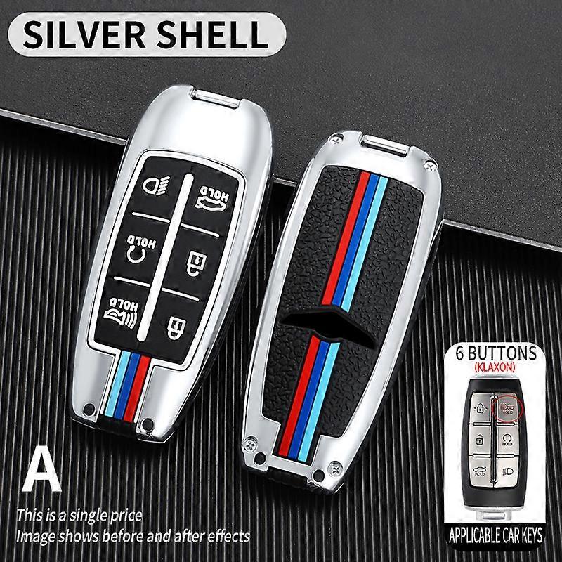 Zinc Alloy Car Key Case Cover with Holder for Hyundai Genesis GV70 GV80 GV90 2020 2021 2022 Key Shell Protective Ring Car Accessories~04598