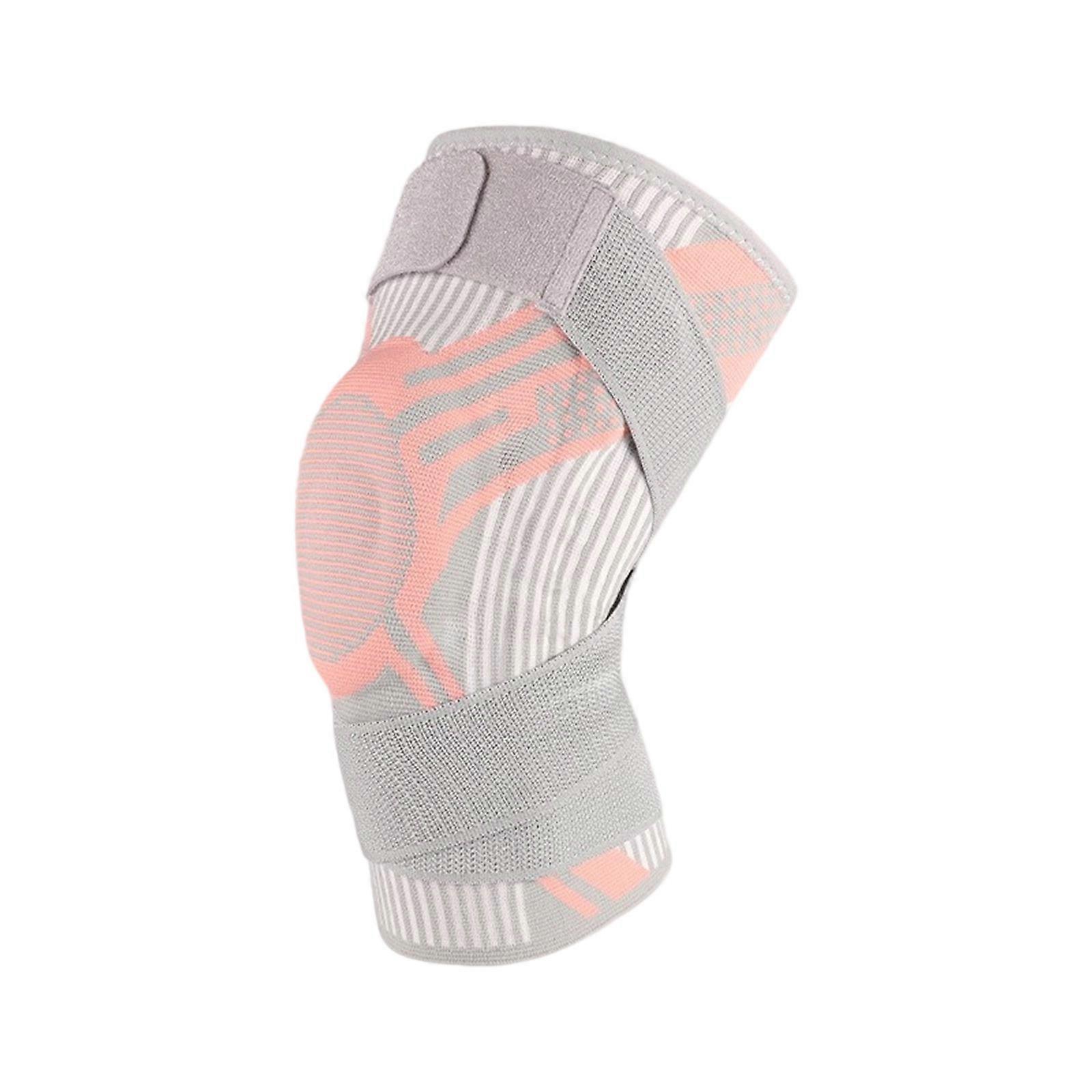 Adjustable Knee Brace with Side Stabilizers Patella Support Elastic Knees Sleeve for Men Women Sports Injury Recovery Gray pink XL