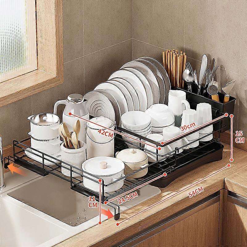 Type B Retractable Kitchen Dish Bowl Drain Rack Carbon Steel Countertop Sink Storage Rack