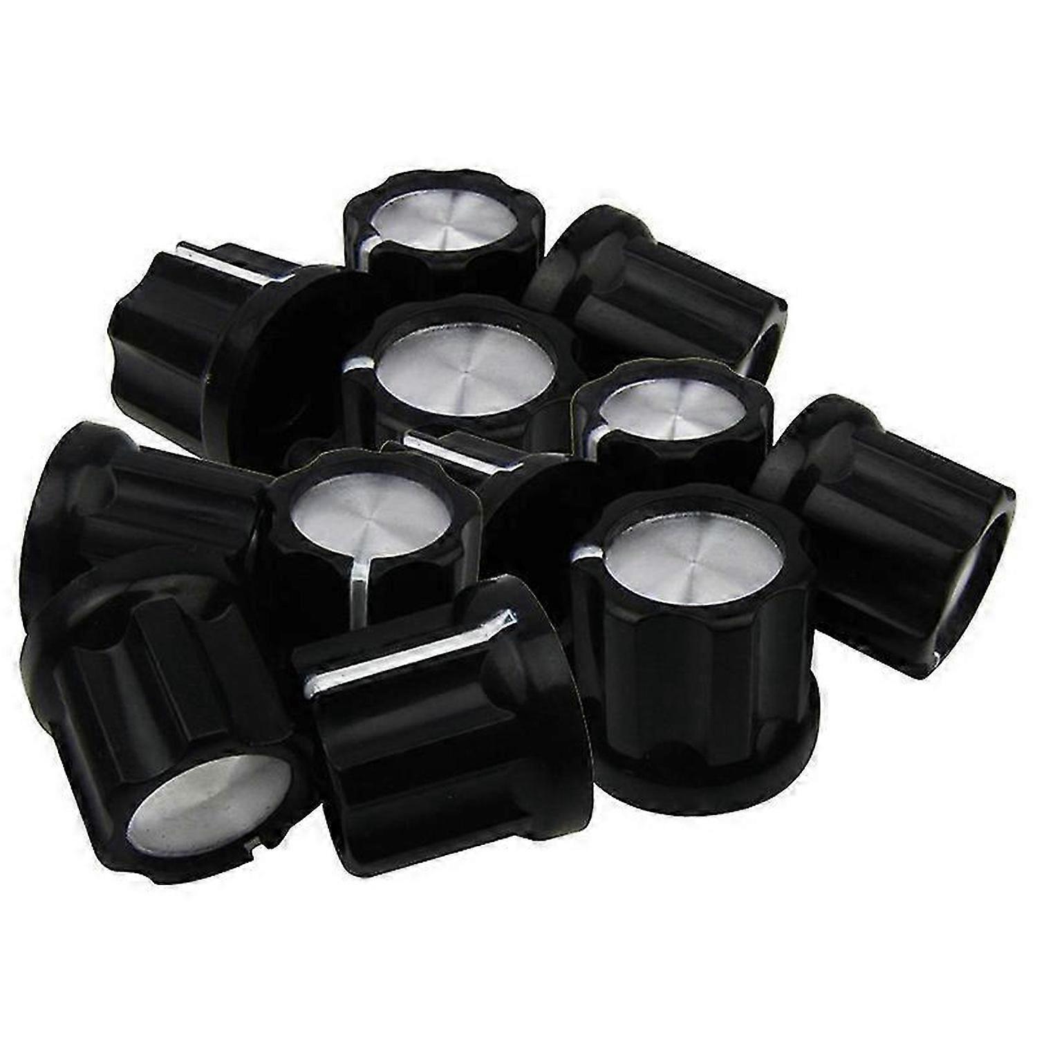 D-Type Shaft Guitar Bass Pot Knobs Amp Knobs Buttons Caps, Black With Silver Top, Pack Of 12