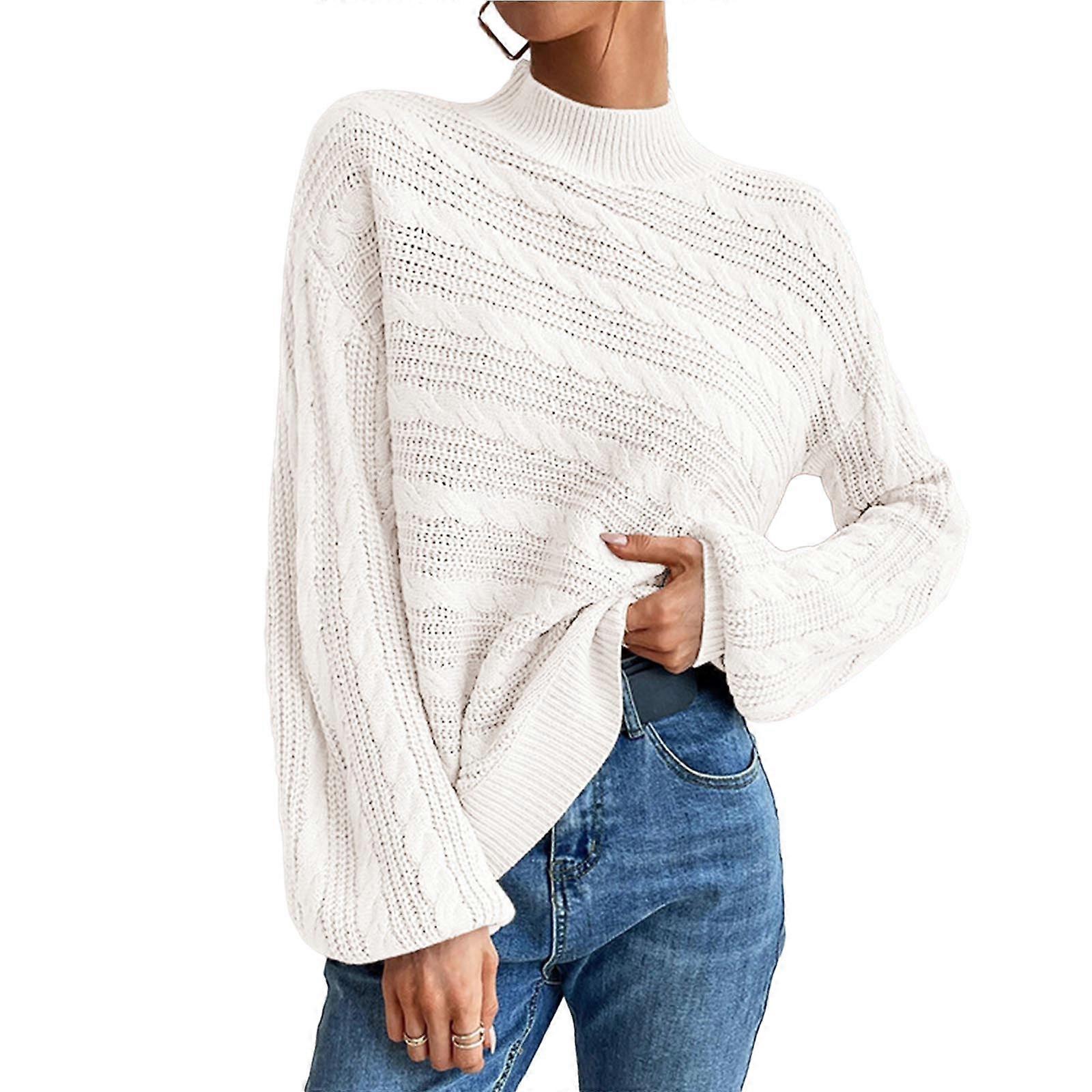 Versatile Loose Fit Sweater with Twisted Pattern Long Sleeve Round Neck Pullover for Women White XL