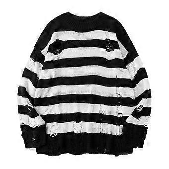 Couple Sweater Stripe Contrast Color Loose Round Neck Thermal Long Sleeves Hip Hop Color Matching Crew Neck Autumn Sweater Daily Clothes