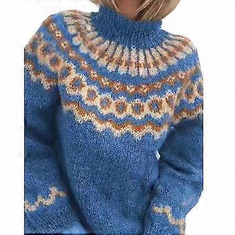High Collar Pullover Sweater with Coarse Needle Jacquard Knitting for Women