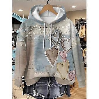 Glissea Romantic Sea Salt Heart Print, Vintage Aged Three-Dimensional Feeling Print Hooded Women's Sweatshirt, Suitable For Fall And Winter, Fashion S