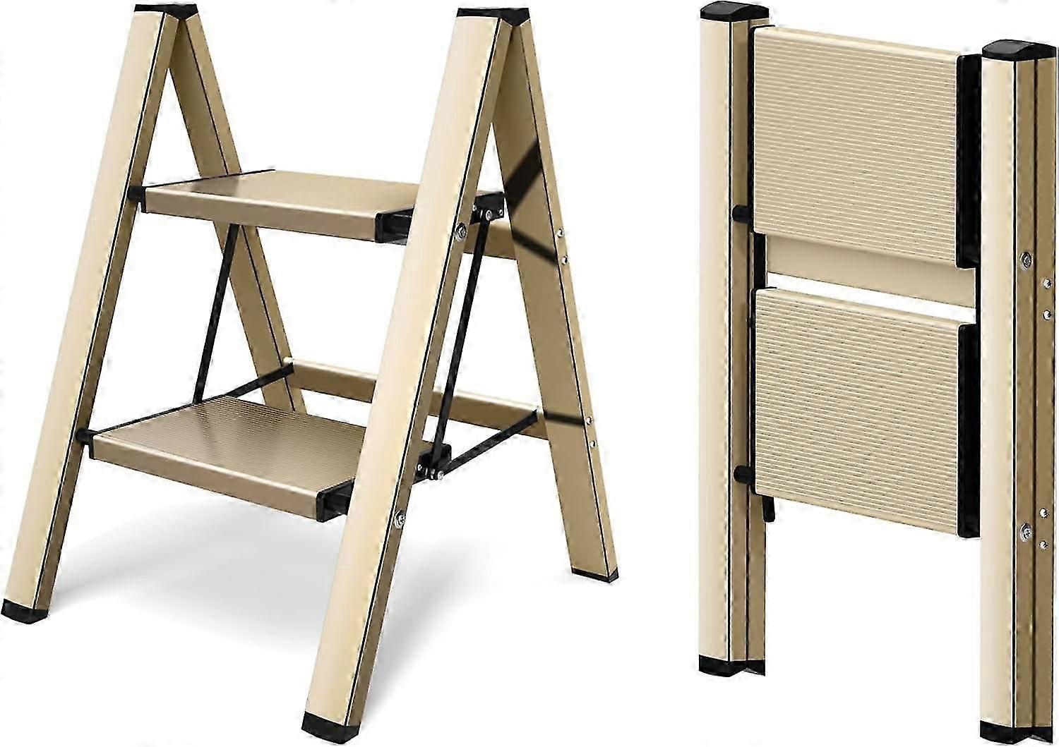 2 Step Ladder, Aluminum Lightweight Folding 2 Step Stool with Anti-Slip Wide Pedal, 330lbs Capacity Ladder for Household and Office(Champagne Gold) 20