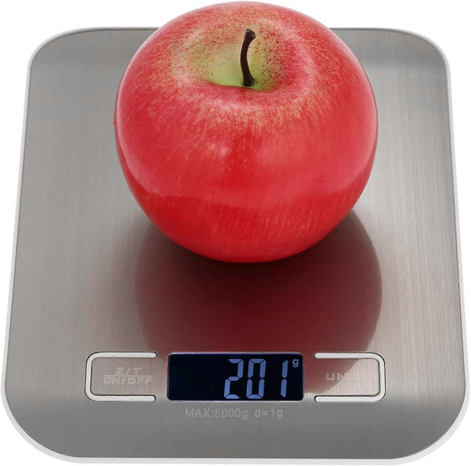 Kitchen Scale Digital LCD Electronic Scale Slim 5Kg/1g Stainless Steel Metal Surface Digital Scale (Silver)