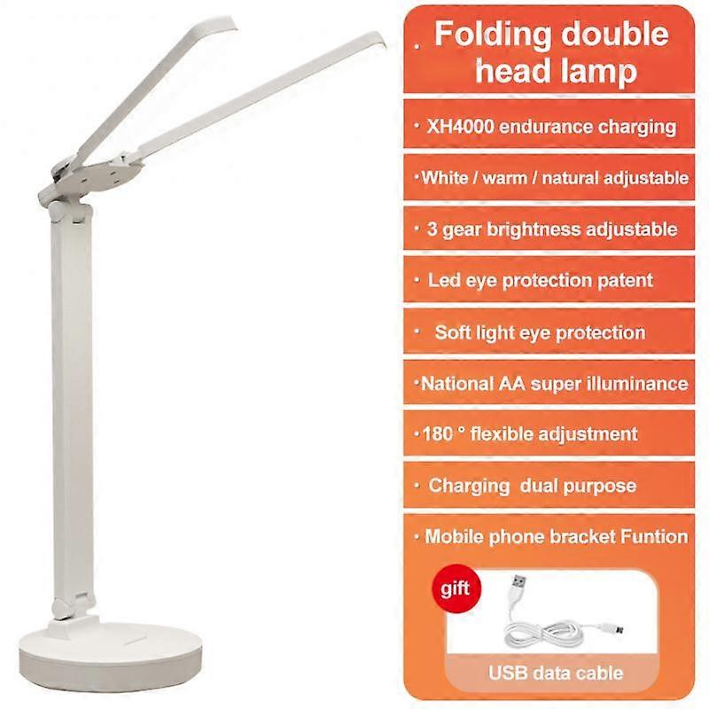 Super Bright Double Head LED Desk Lamps, Eye Protection Table Lamp, 3 Dimming Levels, Touch Night Light for Bedroom, Bedside Reading