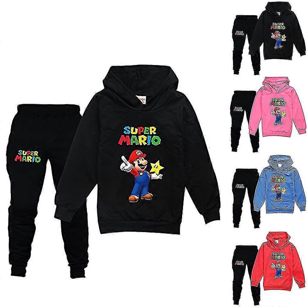 Super Mario Kids Teens Printed Tracksuit Set Casual Hoodie Tops Joggers Pants Suit Outfit Activewear For Boys Girls