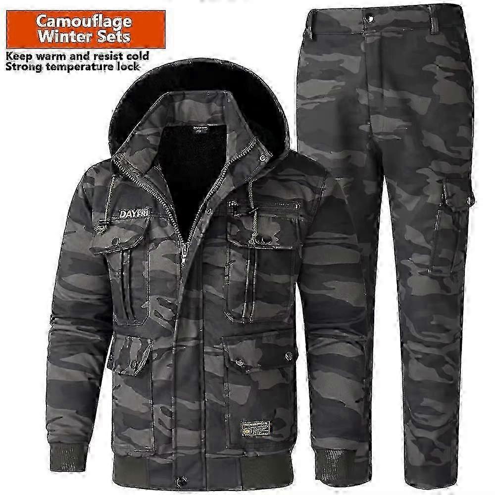 Men's Sets Winter Jackets and Pants Thicken Fluff Lining Warm Puffer Jacket Outdoor Pants Windproof Climbing Ski 2 Pcs 25-26