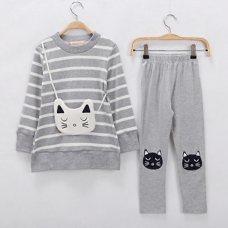 Children Clothing Sets Kids Spring Autumn Striped Long Sleeve With Bag T-shirt +Pant 2Pcs Baby Girl Cotton Cartoon Suits 3-9 YKIDS Outfit Sets