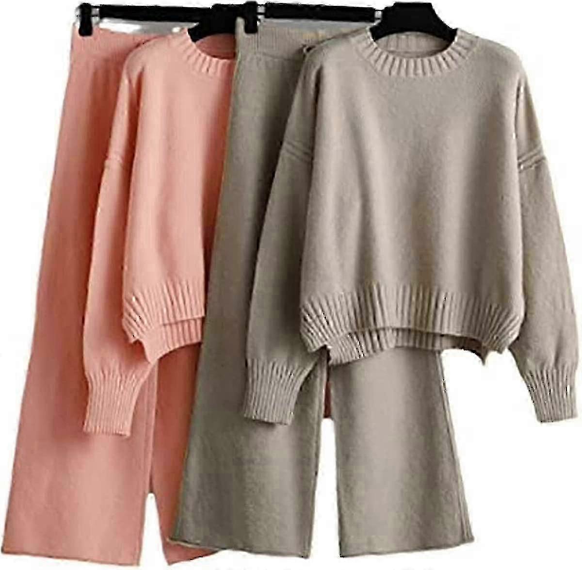 Autumn Winter Women 2 Piece Wide Leg Pants Sets O Neck Sweaters Cashmere Knitted Tracksuits Two Piece Sets-AM 2025