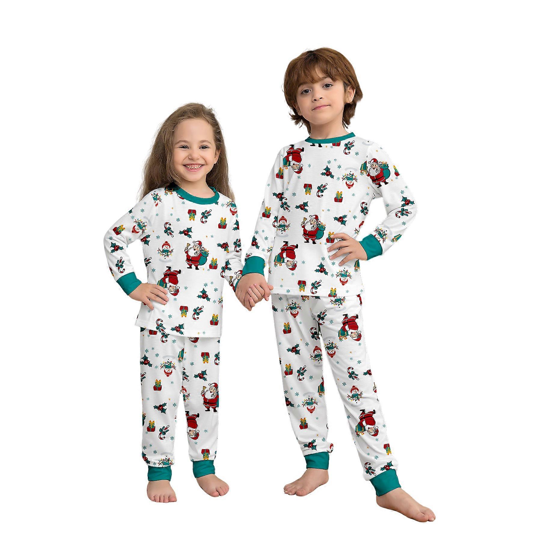 Kids' Unisex Christmas Pajama Sets - Santa Claus & Gift Prints, Green - Trimmed, Festive Sleepwear