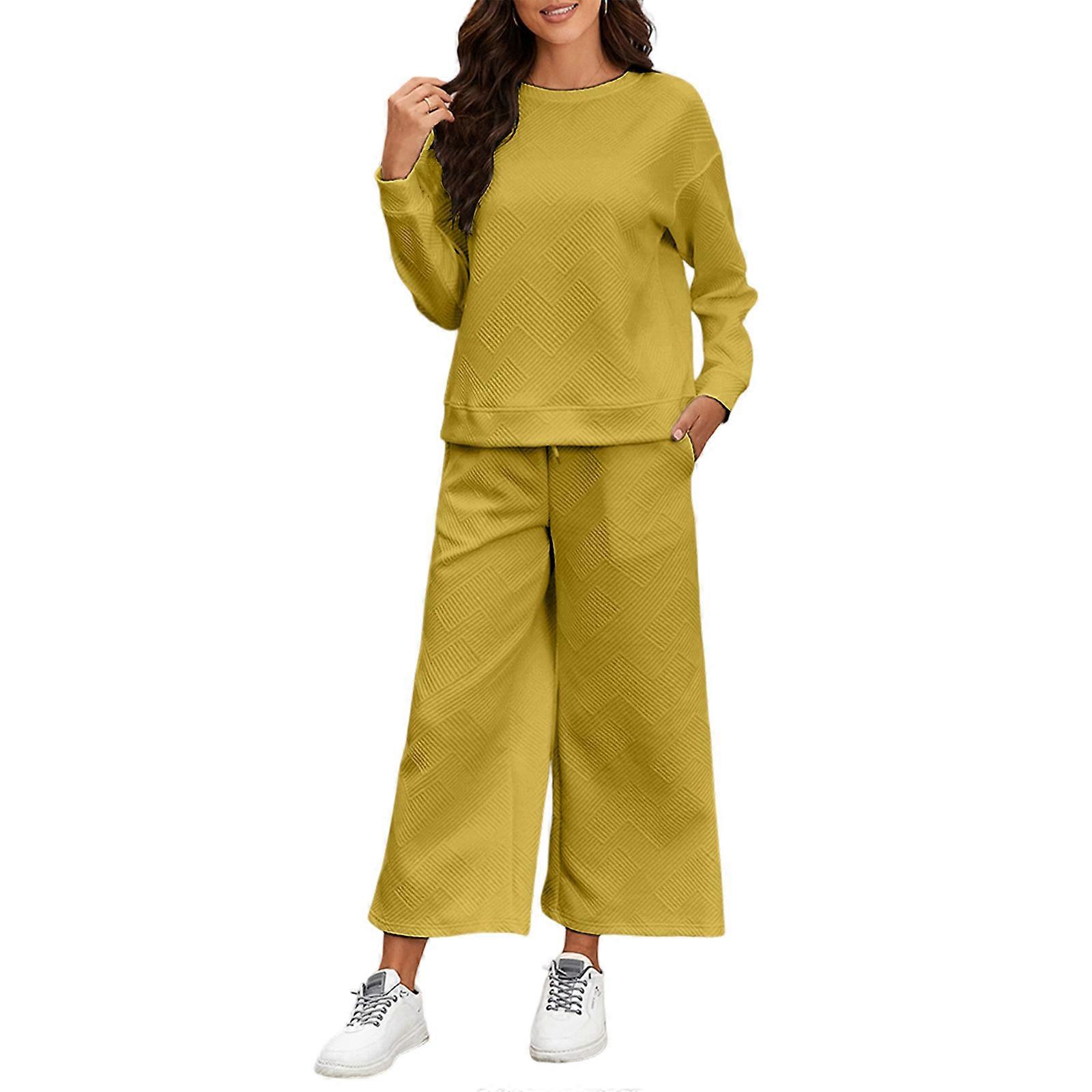 Womens Matching Sets Sweatsuit Sets Fall Fashion Clothes Yellow XL